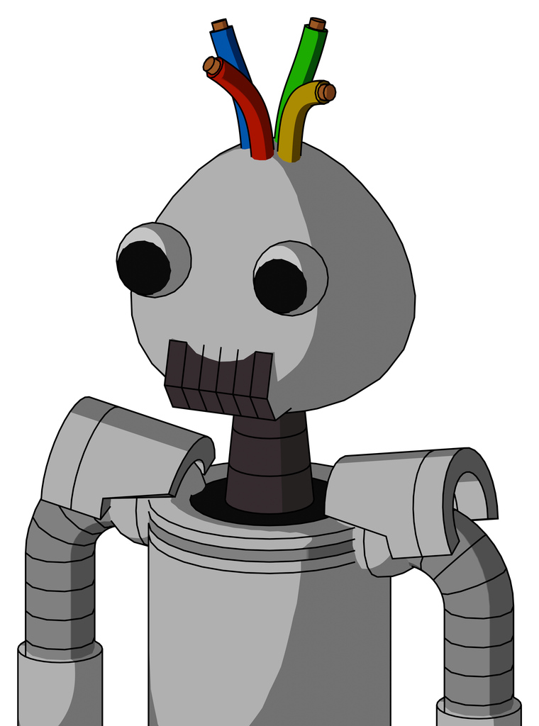 White Automaton With Rounded Head And Dark Tooth Mouth And Two Eyes And Wire Hair