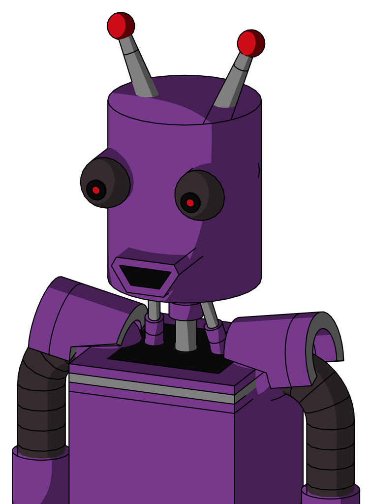 Purple Automaton With Cylinder Head And Happy Mouth And Red Eyed And Double Led Antenna
