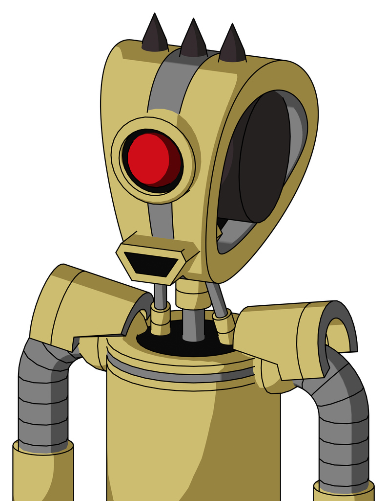 Yellow Droid With Droid Head And Happy Mouth And Cyclops Eye And Three Dark Spikes