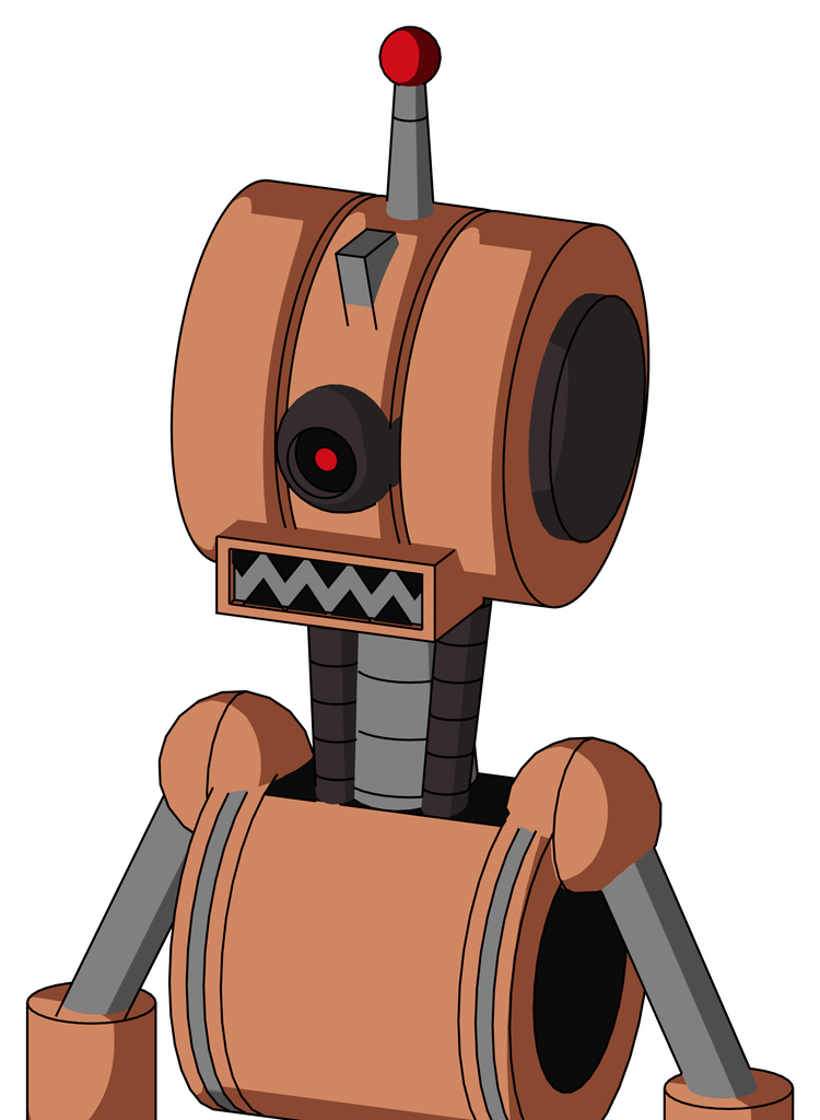 Peach Robot With Multi-Toroid Head And Square Mouth And Black Cyclops Eye And Single Led Antenna