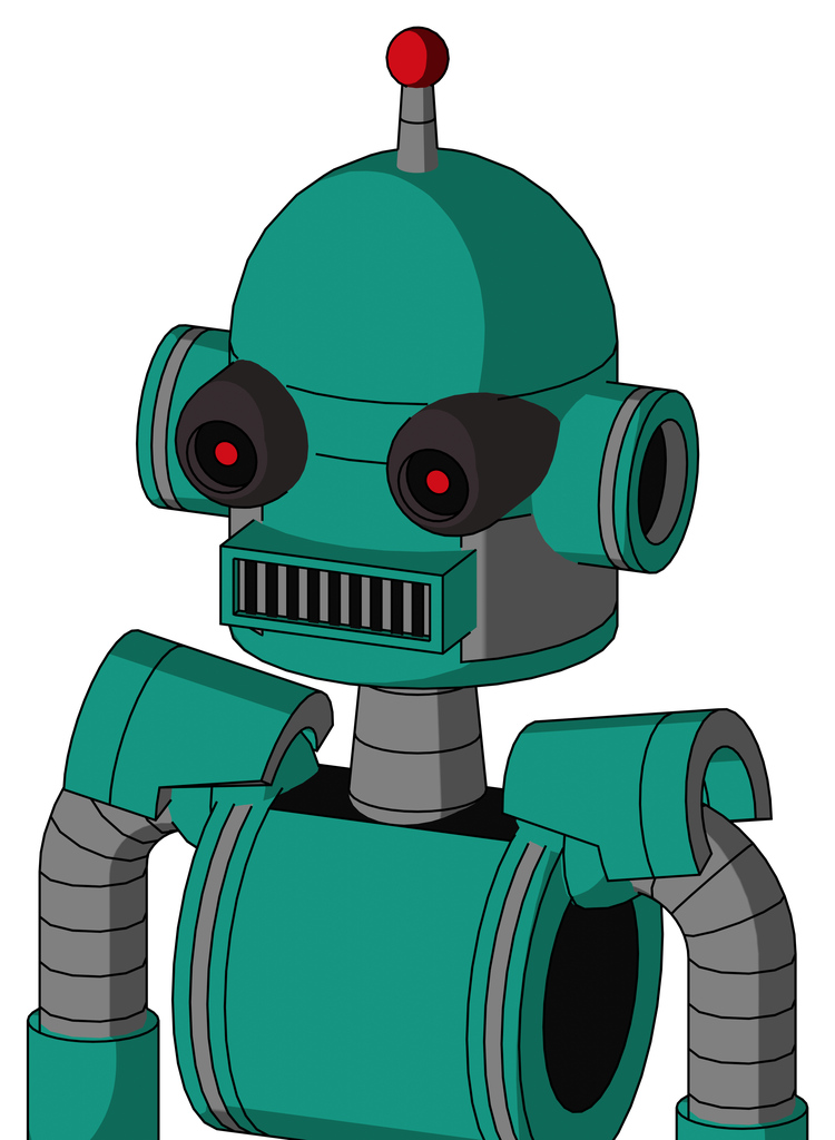 Green Automaton With Dome Head And Square Mouth And Black Glowing Red Eyes And Single Led Antenna