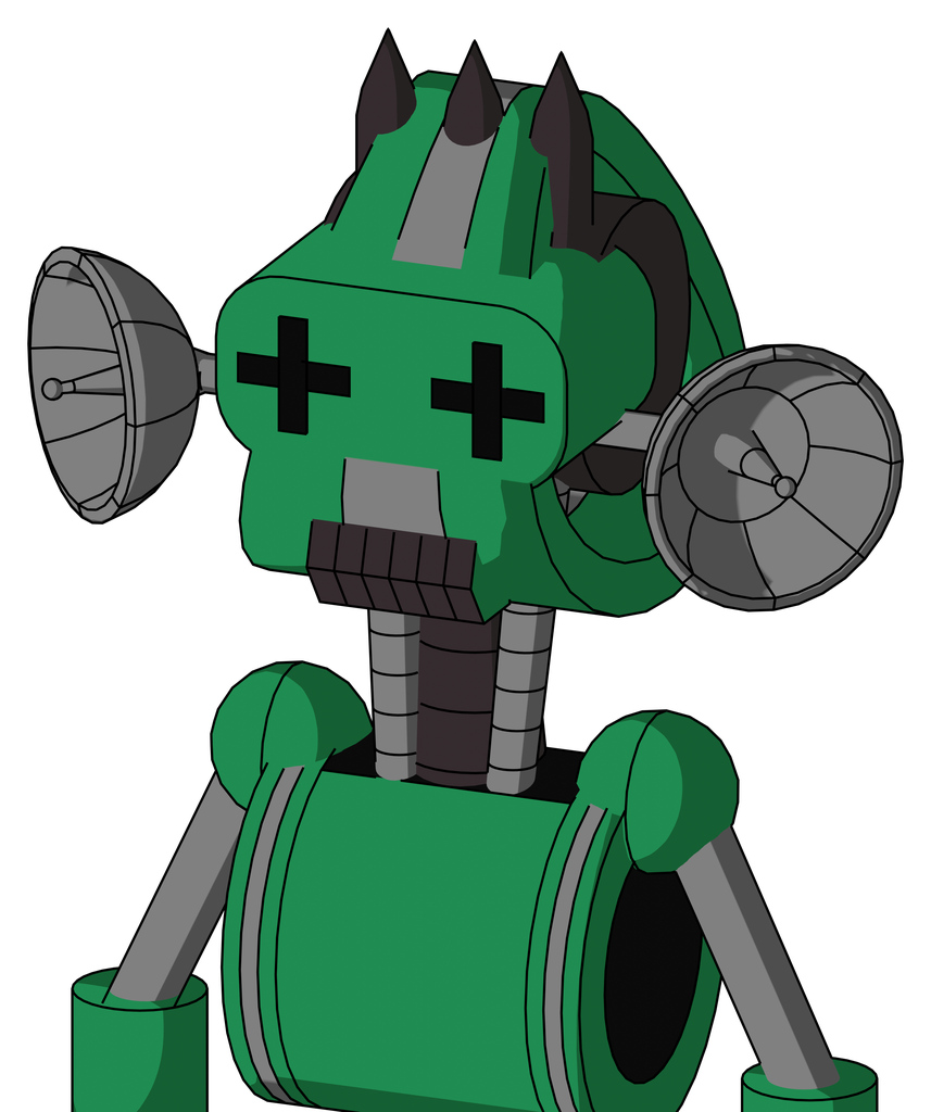 Green Automaton With Droid Head And Dark Tooth Mouth And Plus Sign Eyes And Three Dark Spikes