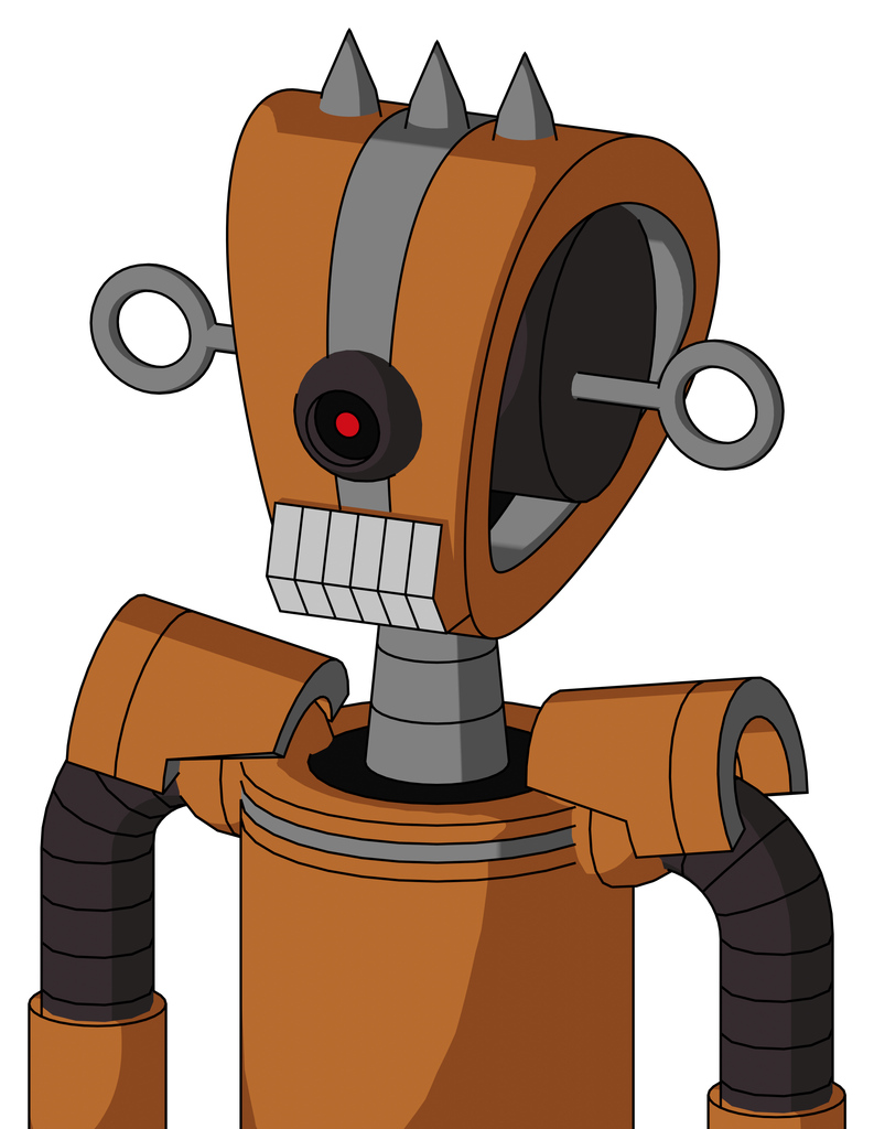 Orange Robot With Droid Head And Teeth Mouth And Black Cyclops Eye And Three Spiked