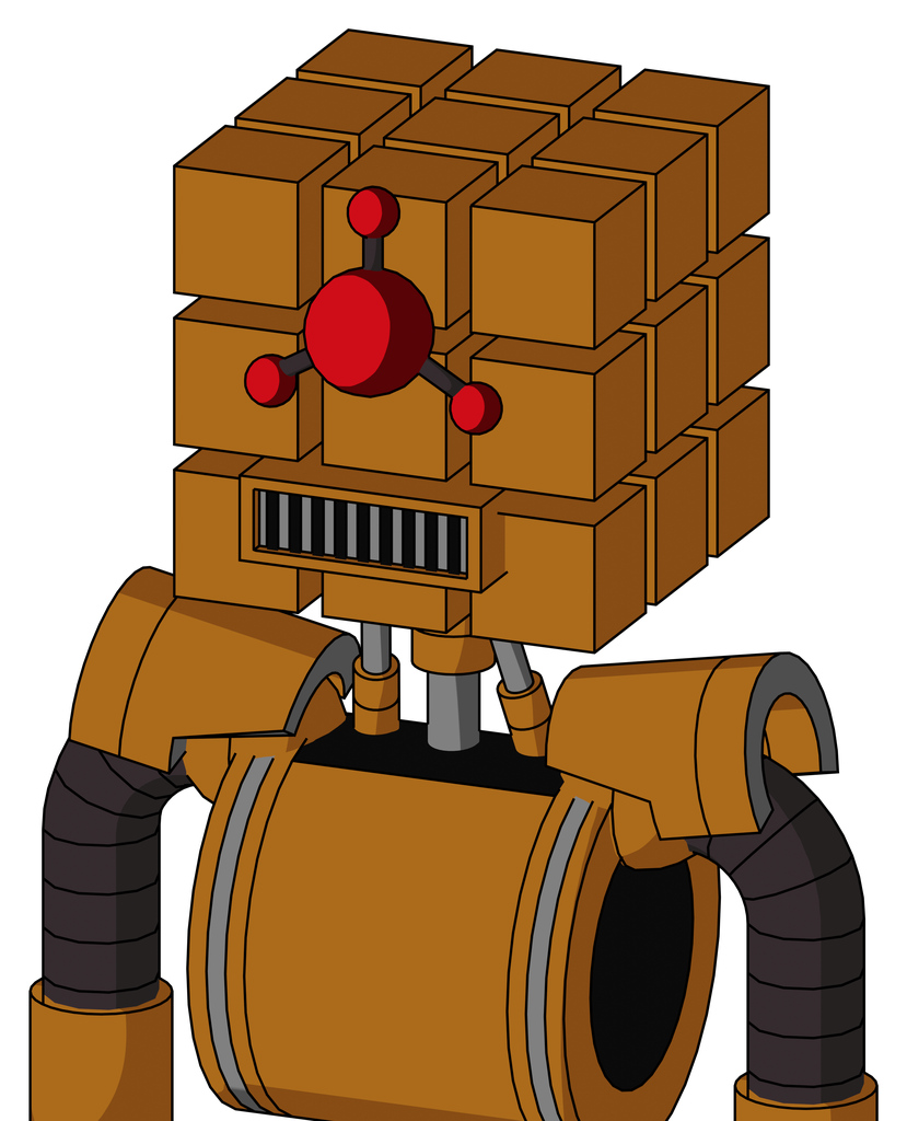Dirty-Orange Mech With Cube Head And Square Mouth And Cyclops Compound Eyes