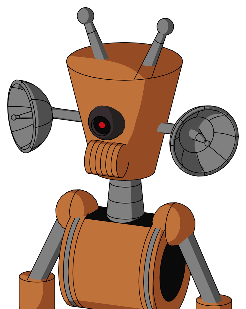 Orange Droid With Cylinder-Conic Head And Speakers Mouth And Black Cyclops Eye And Double Antenna