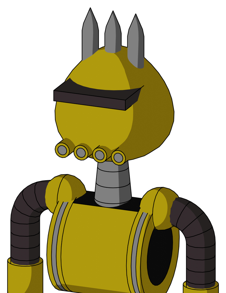 Yellow Automaton With Rounded Head And Pipes Mouth And Black Visor Cyclops And Three Spiked
