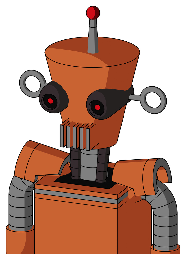 Orange Mech With Cylinder-Conic Head And Vent Mouth And Black Glowing Red Eyes And Single Led Antenna
