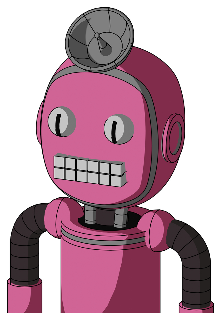 Pink Robot With Bubble Head And Keyboard Mouth And Two Eyes And Radar Dish Hat