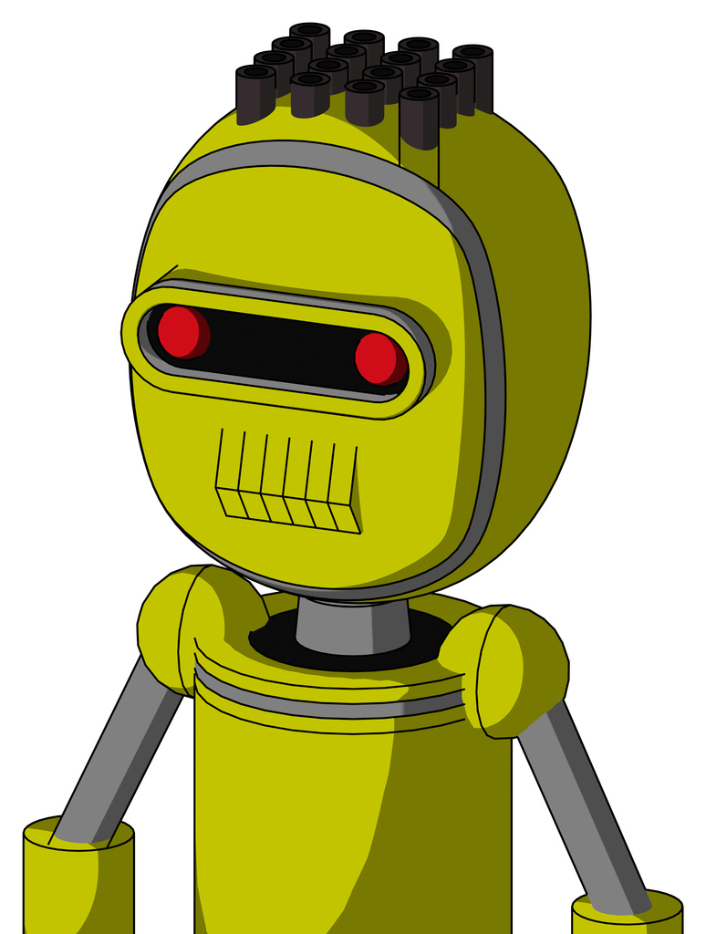 Yellow Robot With Bubble Head And Toothy Mouth And Visor Eye And Pipe Hair