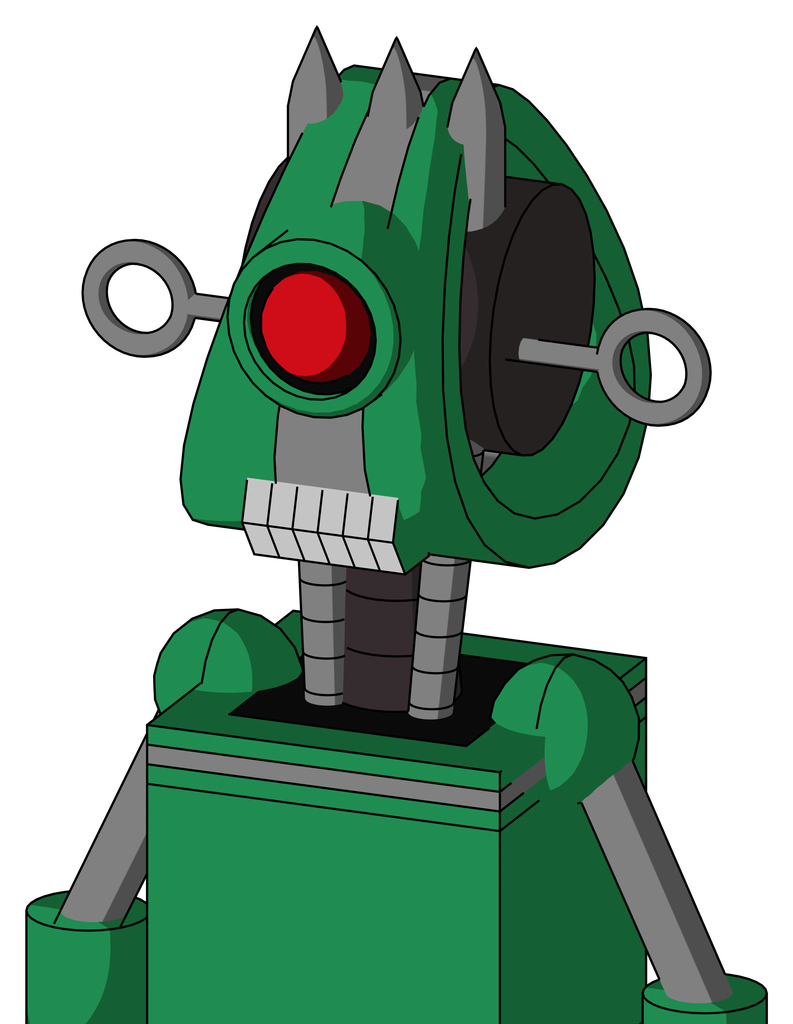 Green Automaton With Droid Head And Teeth Mouth And Cyclops Eye And Three Spiked