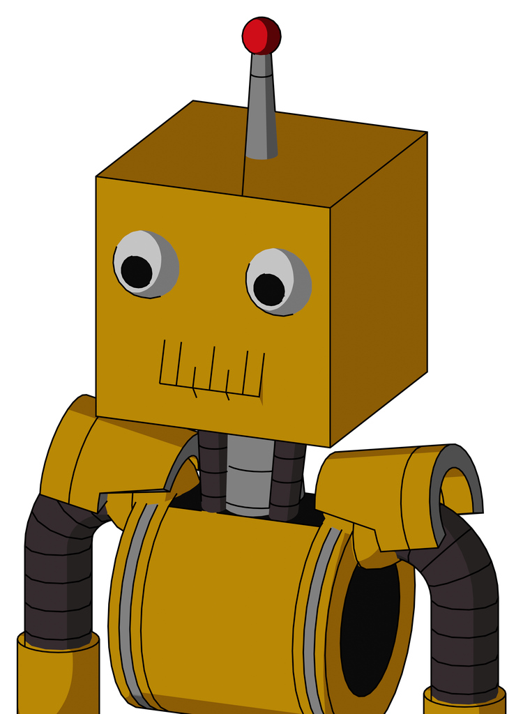 Yellow Droid With Box Head And Toothy Mouth And Two Eyes And Single Led Antenna