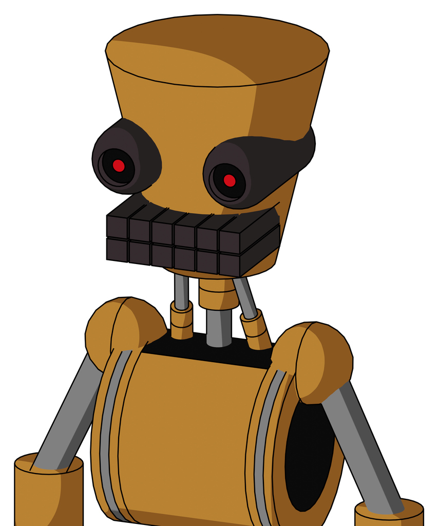 Yellowish Droid With Cylinder-Conic Head And Keyboard Mouth And Black Glowing Red Eyes