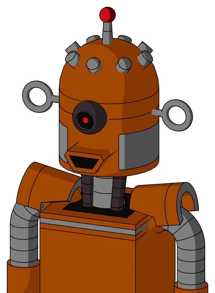 Redish-Orange Mech With Dome Head And Happy Mouth And Black Cyclops Eye And Single Led Antenna