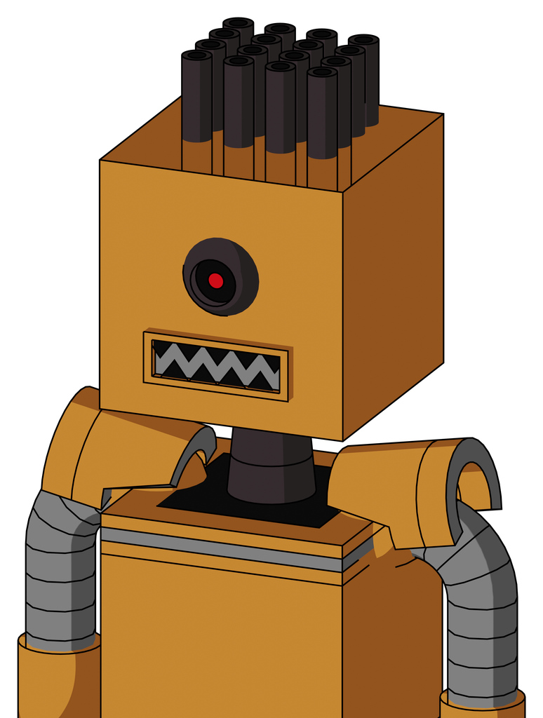 Peach Droid With Box Head And Square Mouth And Black Cyclops Eye And Pipe Hair