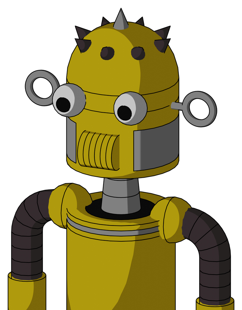 Yellow Automaton With Dome Head And Speakers Mouth And Two Eyes And Spike Tip