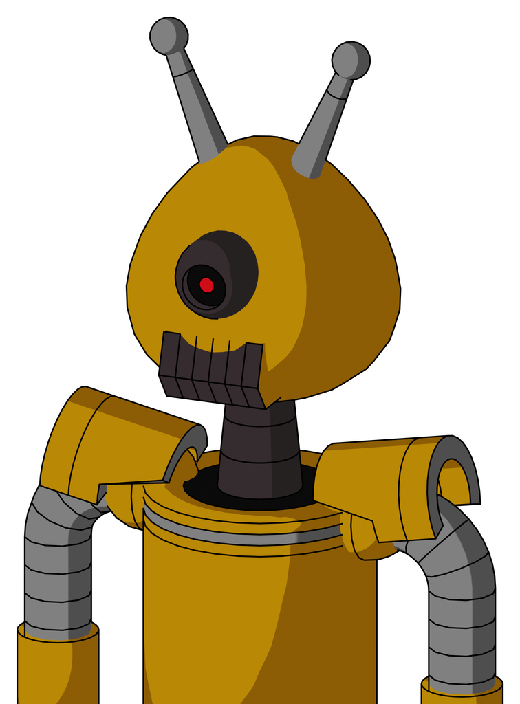 Yellow Droid With Rounded Head And Dark Tooth Mouth And Black Cyclops Eye And Double Antenna