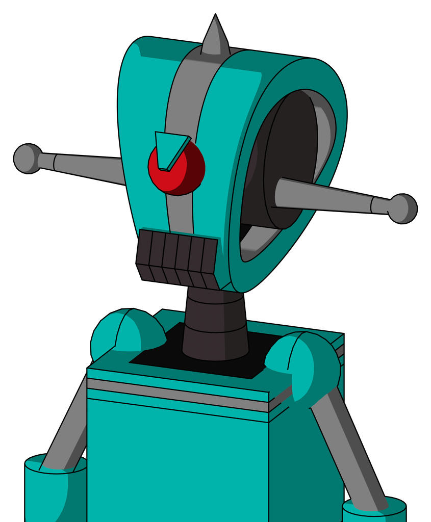 Greenish Robot With Droid Head And Dark Tooth Mouth And Angry Cyclops And Spike Tip