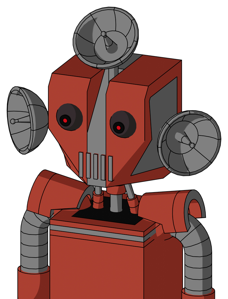 Red Automaton With Mechanical Head And Vent Mouth And Red Eyed And Radar Dish Hat