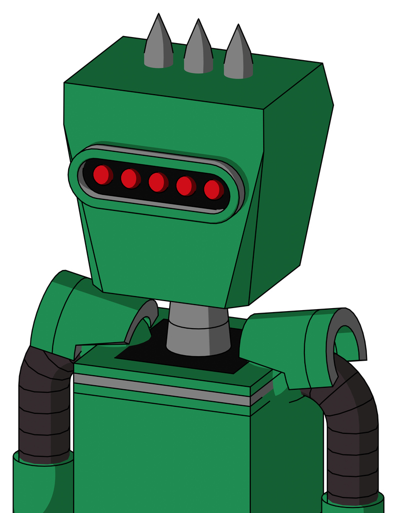 Green Automaton With Box Head And Visor Eye And Three Spiked