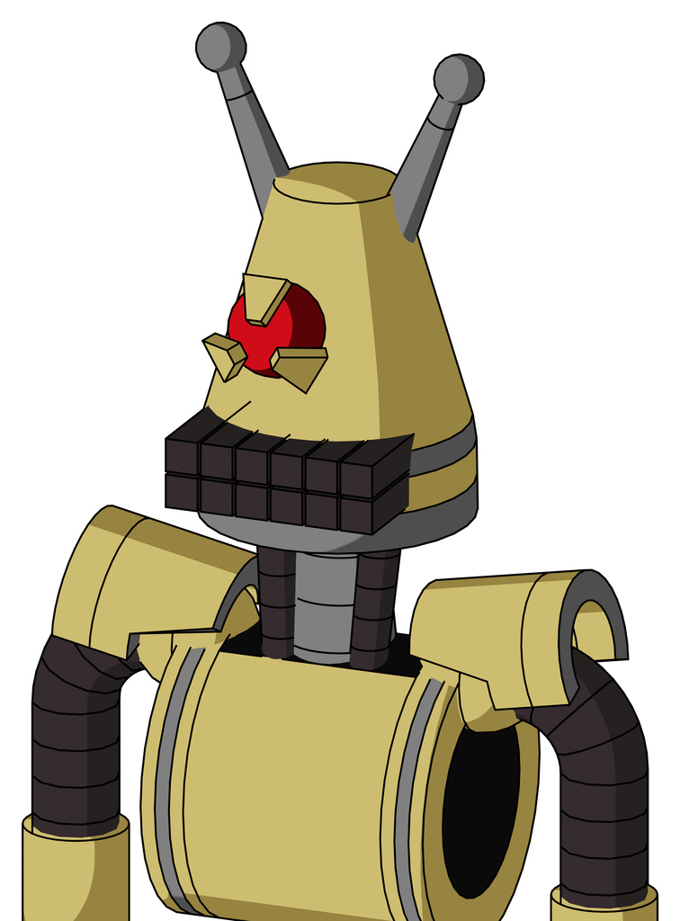 Yellow Droid With Cone Head And Keyboard Mouth And Angry Cyclops Eye And Double Antenna