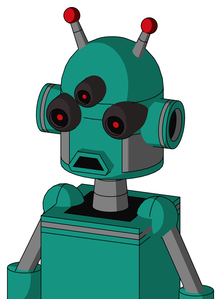 Green Automaton With Dome Head And Sad Mouth And Three-Eyed And Double Led Antenna