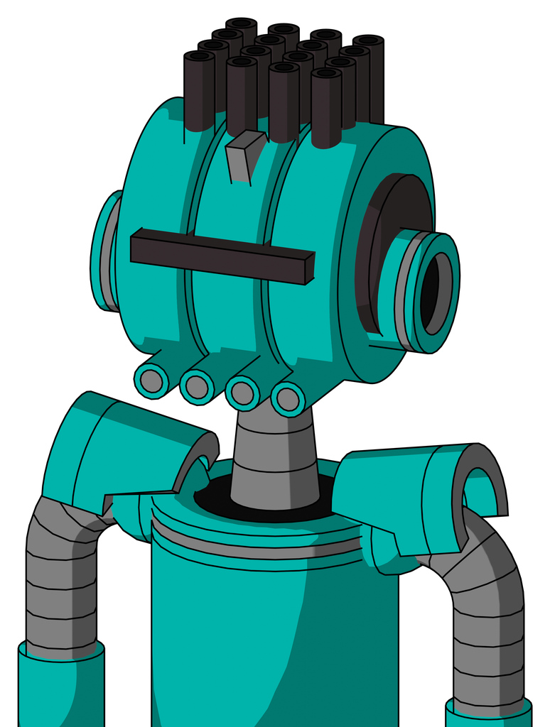 Greenish Robot With Multi-Toroid Head And Pipes Mouth And Black Visor Cyclops And Pipe Hair