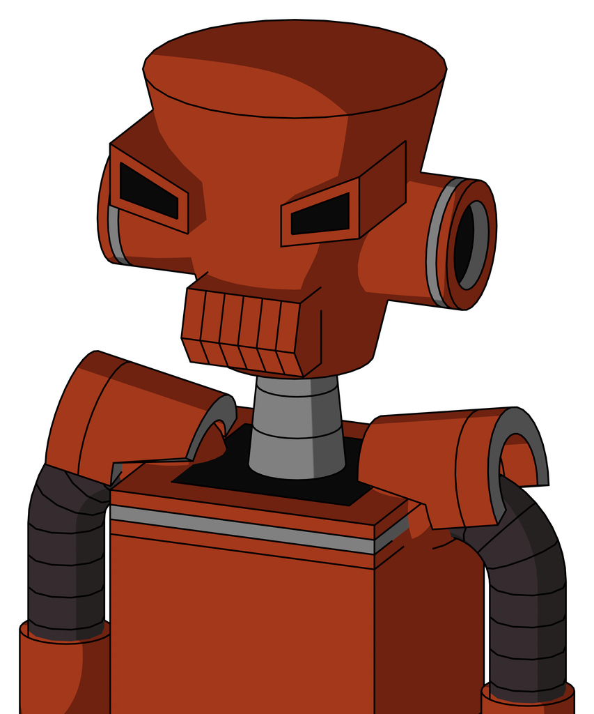 Orange Robot With Cylinder-Conic Head And Toothy Mouth And Angry Eyes