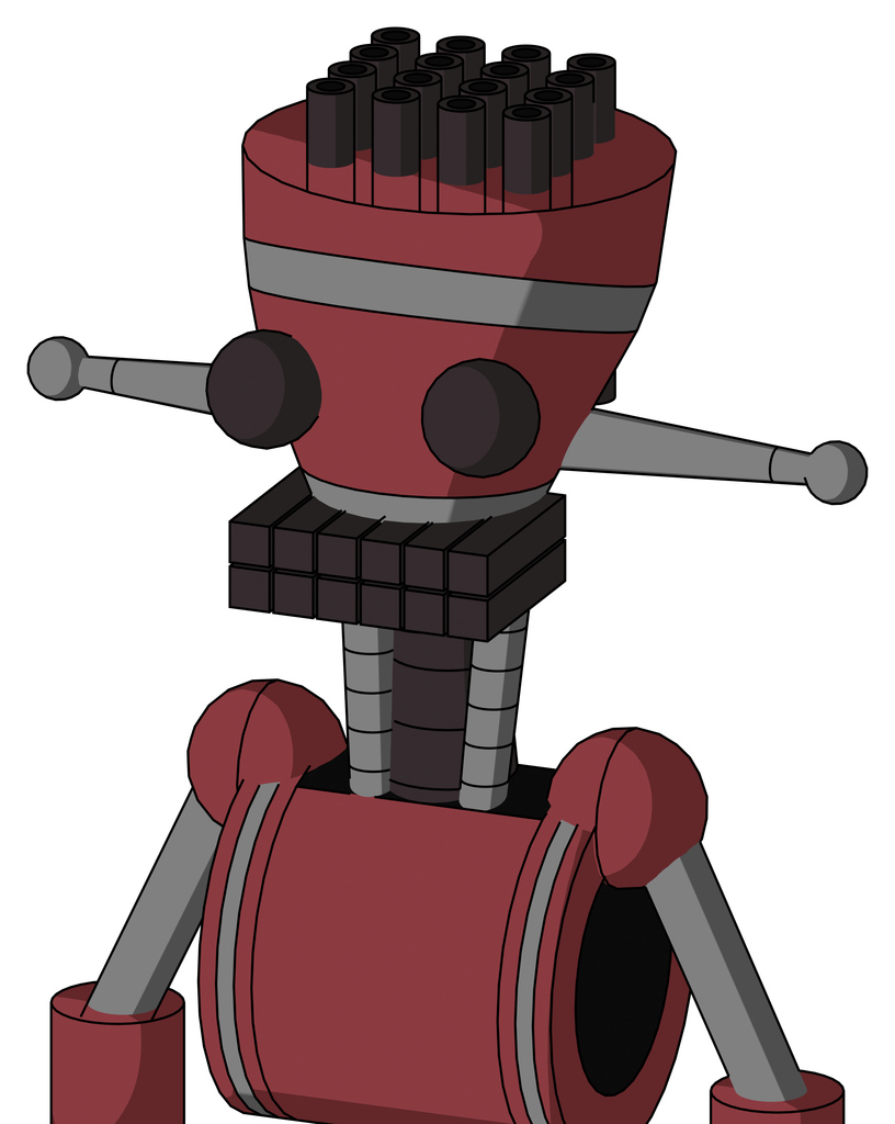Red Mech With Vase Head And Keyboard Mouth And Two Eyes And Pipe Hair