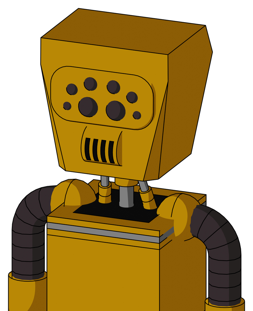 Yellow Droid With Box Head And Speakers Mouth And Bug Eyes