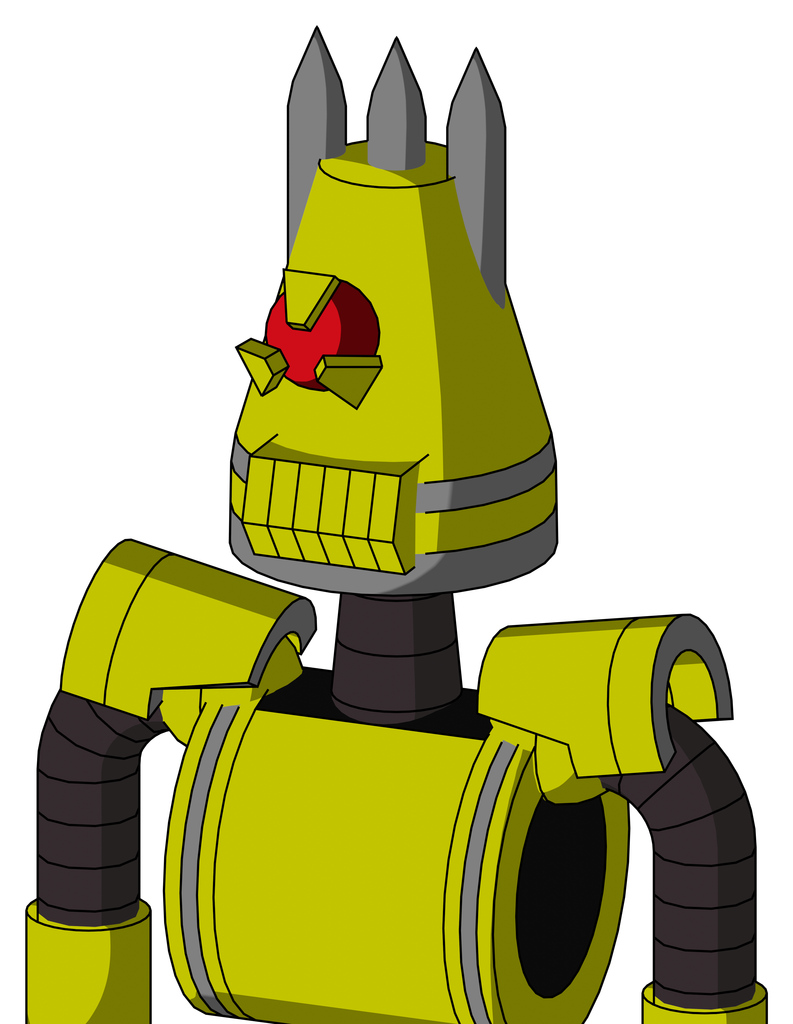 Yellow Robot With Cone Head And Toothy Mouth And Angry Cyclops Eye And Three Spiked