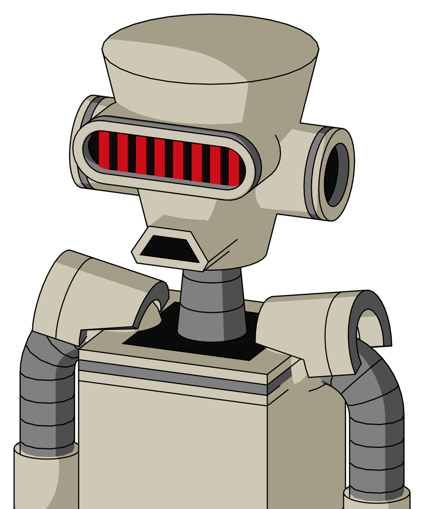 Tan Mech With Cylinder-Conic Head And Sad Mouth And Visor Eye