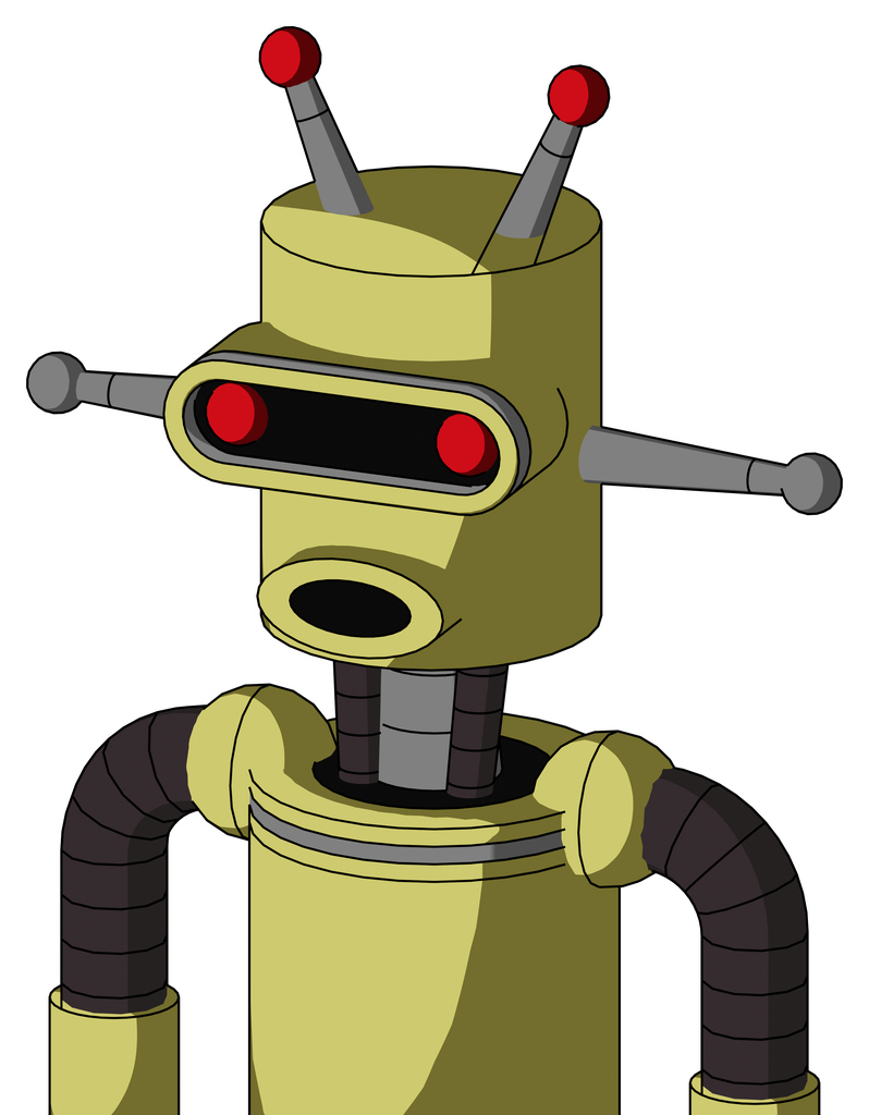 Yellow Robot With Cylinder Head And Round Mouth And Visor Eye And Double Led Antenna