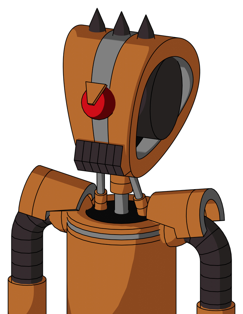 Orange Robot With Droid Head And Dark Tooth Mouth And Angry Cyclops And Three Dark Spikes
