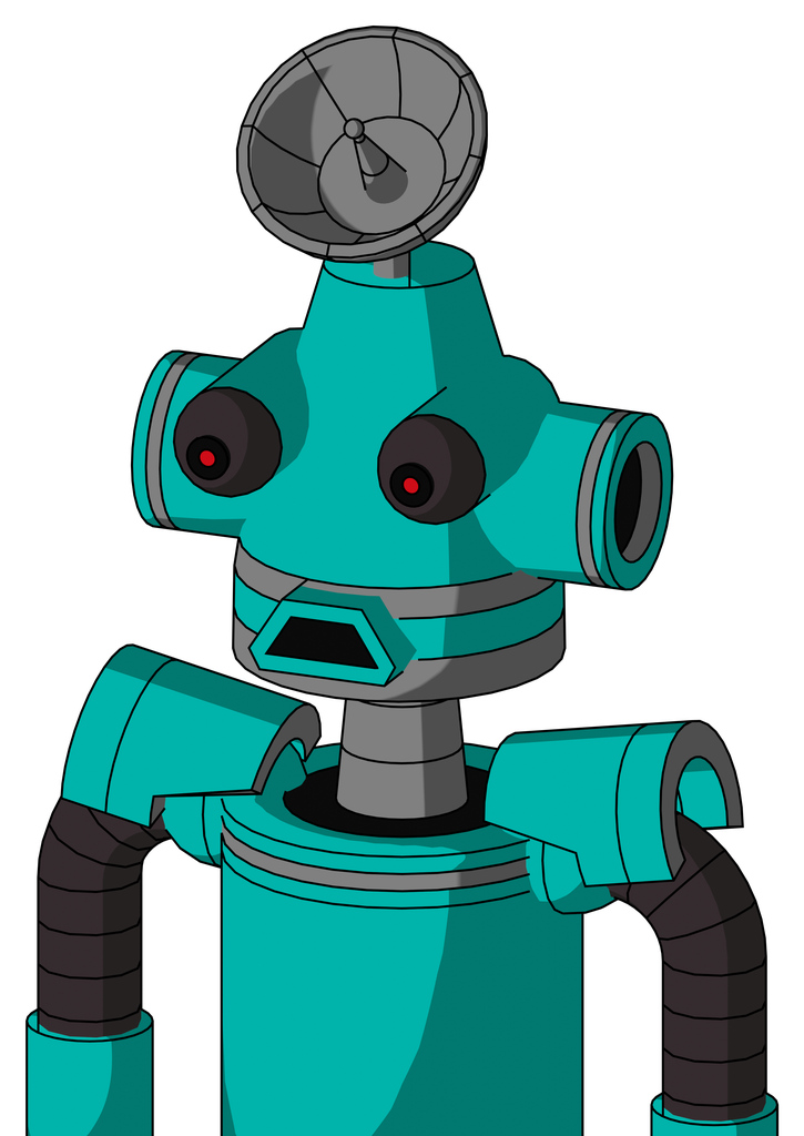 Greenish Robot With Cone Head And Sad Mouth And Red Eyed And Radar Dish Hat
