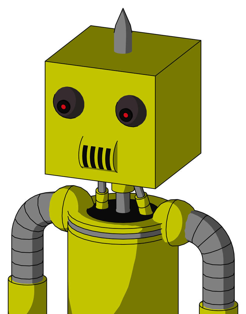 Yellow Robot With Box Head And Speakers Mouth And Red Eyed And Spike Tip