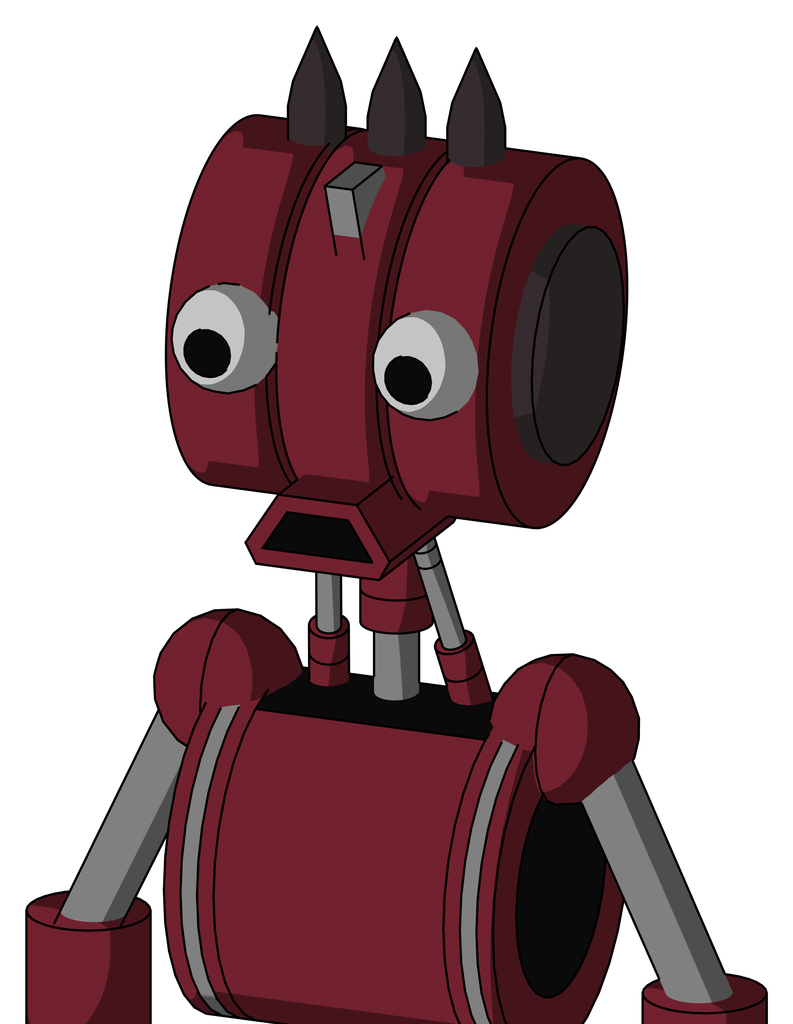 Red Droid With Multi-Toroid Head And Sad Mouth And Two Eyes And Three Dark Spikes