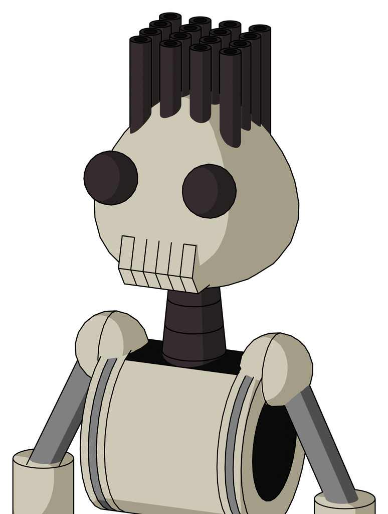 Tan Mech With Rounded Head And Toothy Mouth And Two Eyes And Pipe Hair