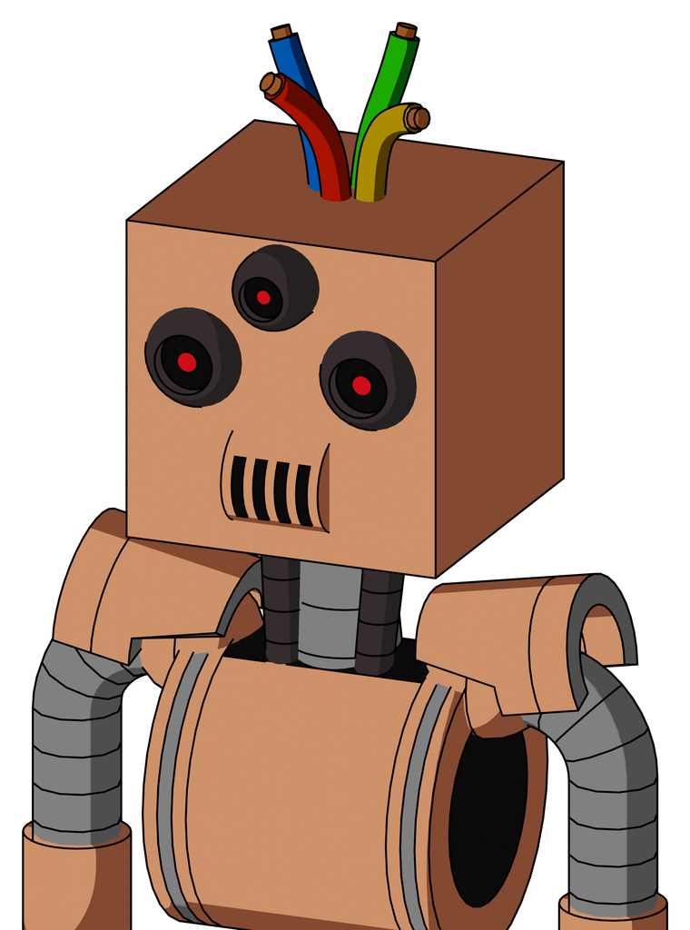 Peach Robot With Box Head And Speakers Mouth And Three-Eyed And Wire Hair
