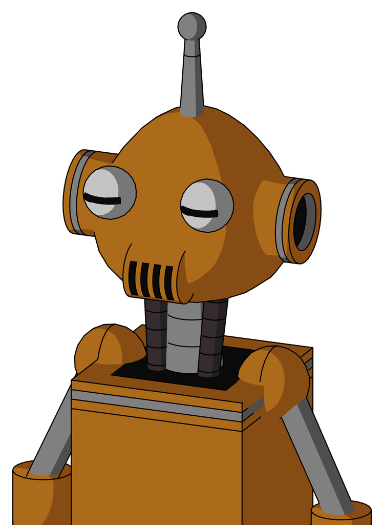 Dirty-Orange Mech With Rounded Head And Speakers Mouth And Two Eyes And Single Antenna
