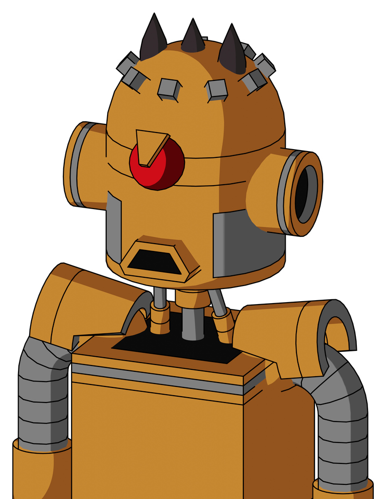 Peach Droid With Dome Head And Sad Mouth And Angry Cyclops And Three Dark Spikes