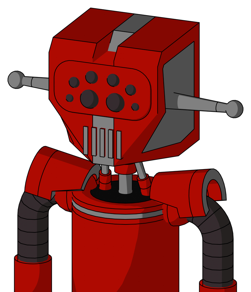 Red Mech With Mechanical Head And Vent Mouth And Bug Eyes
