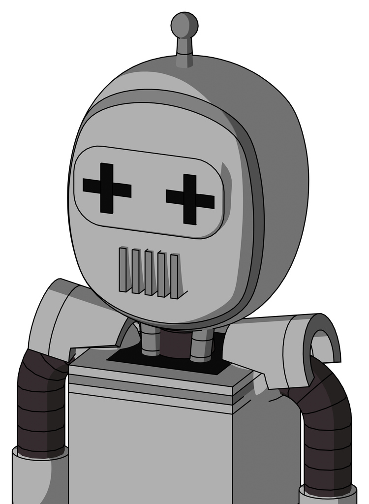 White Automaton With Bubble Head And Vent Mouth And Plus Sign Eyes And Single Antenna