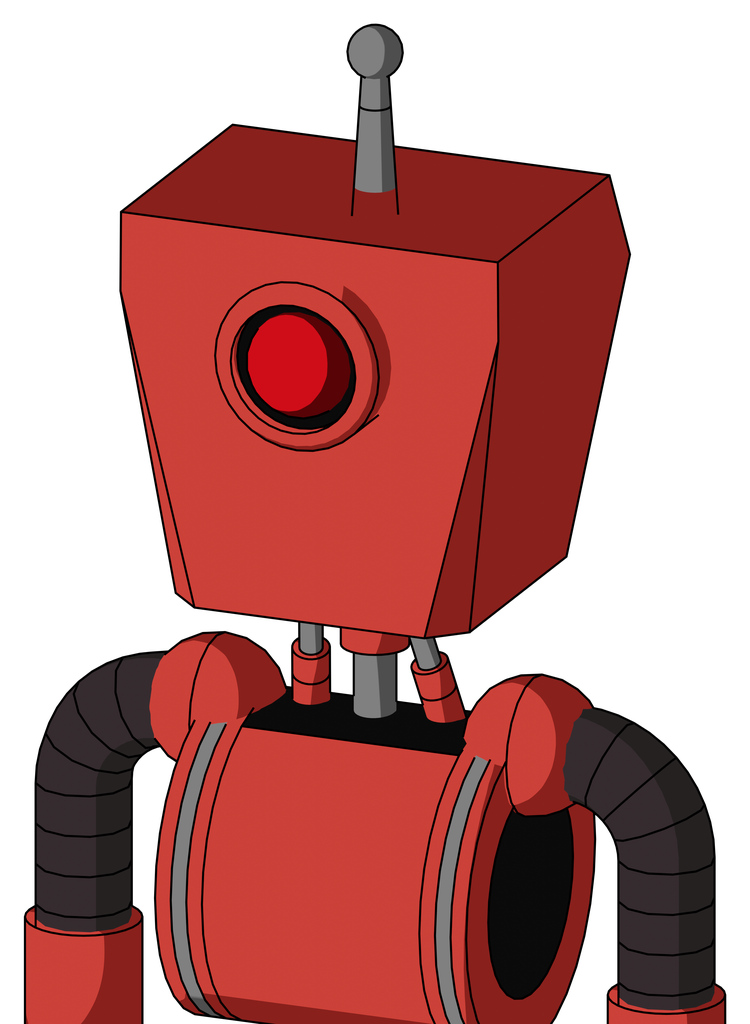 Tomato-Red Droid With Box Head And Cyclops Eye And Single Antenna