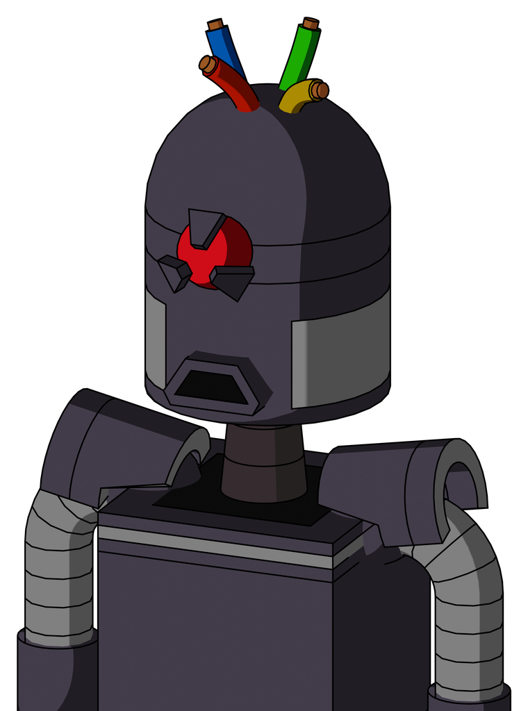 Purple Robot With Dome Head And Sad Mouth And Angry Cyclops Eye And Wire Hair