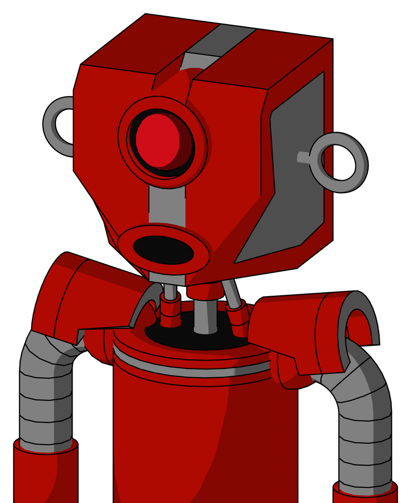 Red Mech With Mechanical Head And Round Mouth And Cyclops Eye