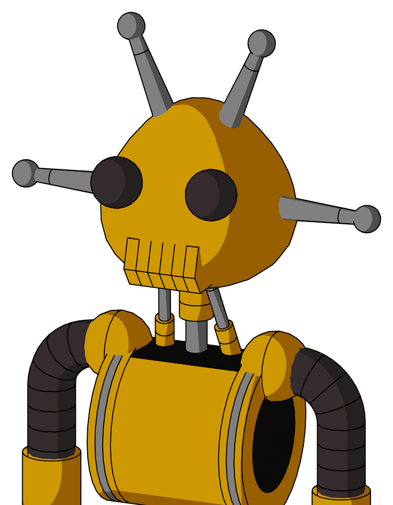 Yellow Robot With Rounded Head And Toothy Mouth And Two Eyes And Double Antenna
