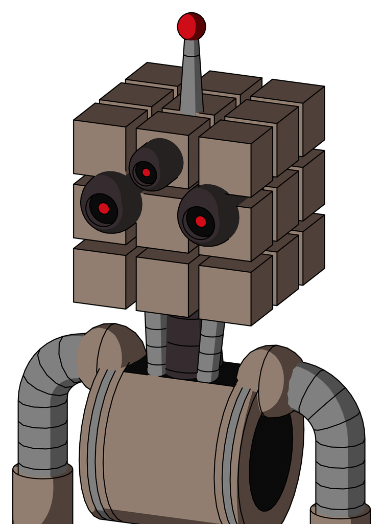Gray Robot With Cube Head And Three-Eyed And Single Led Antenna