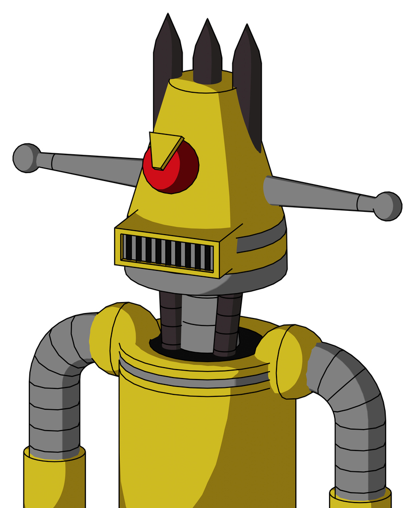 Yellow Droid With Cone Head And Square Mouth And Angry Cyclops And Three Dark Spikes