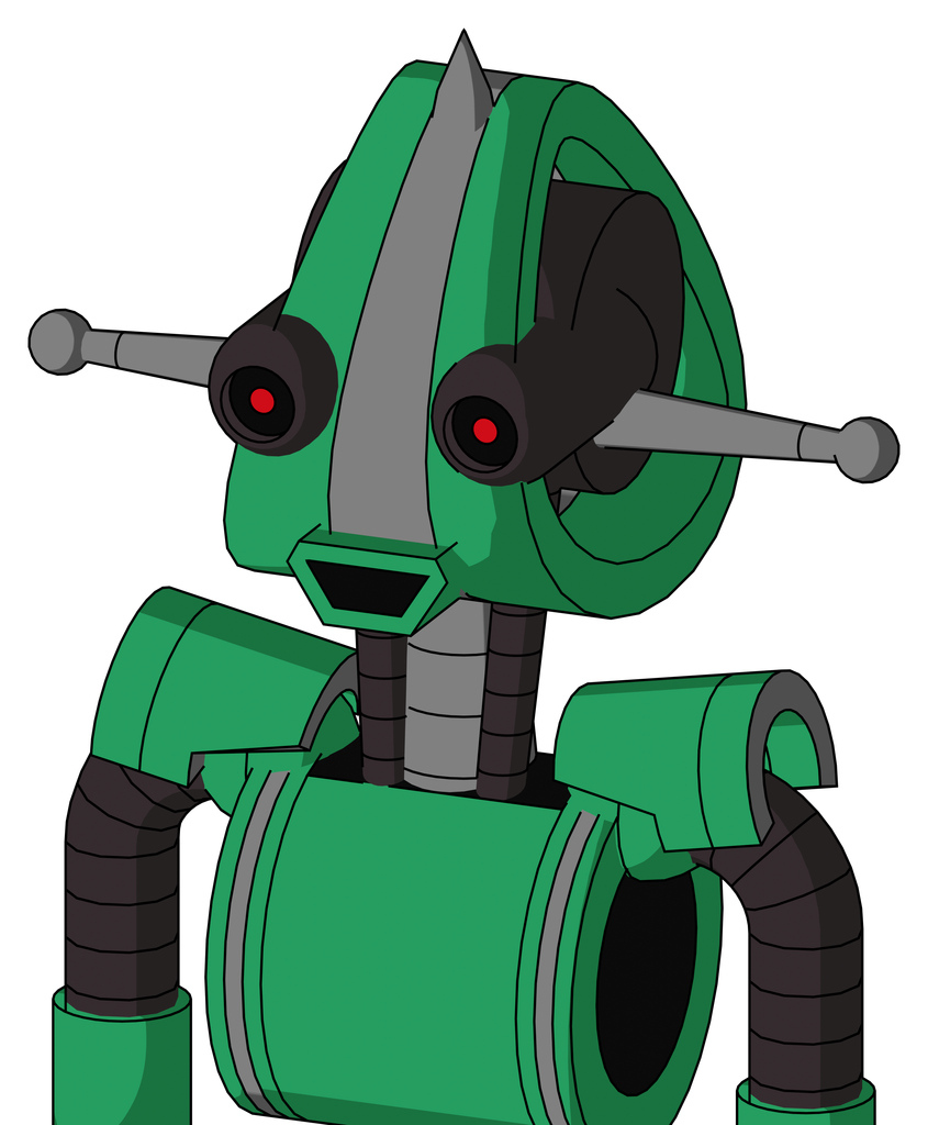 Green Automaton With Droid Head And Happy Mouth And Black Glowing Red Eyes And Spike Tip