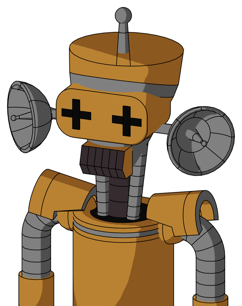 Yellowish Droid With Vase Head And Dark Tooth Mouth And Plus Sign Eyes And Single Antenna